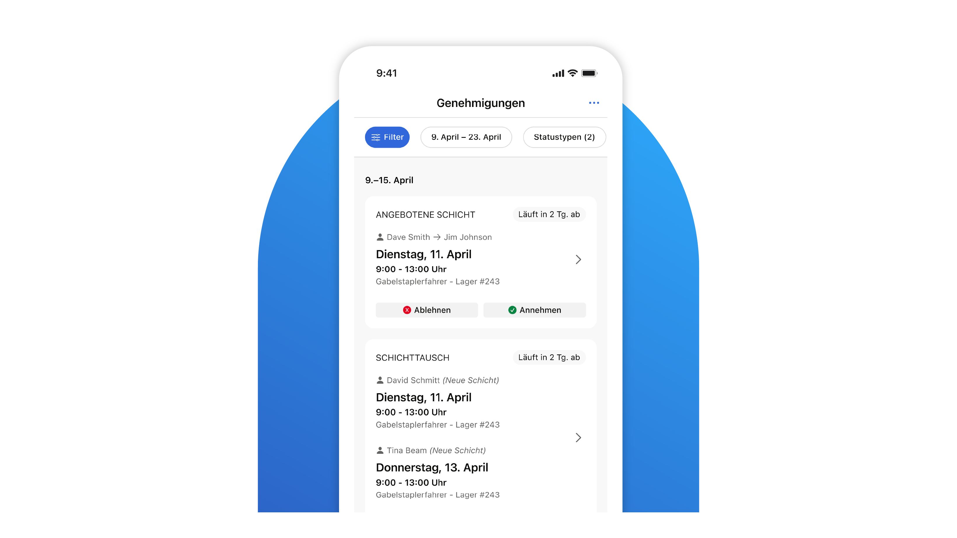 Über die App können Ihre Mitarbeiter ihre Verfügbarkeit aktualisieren, ihren Schichtplan überprüfen, sich für Benefits registrieren und vieles mehr.Â